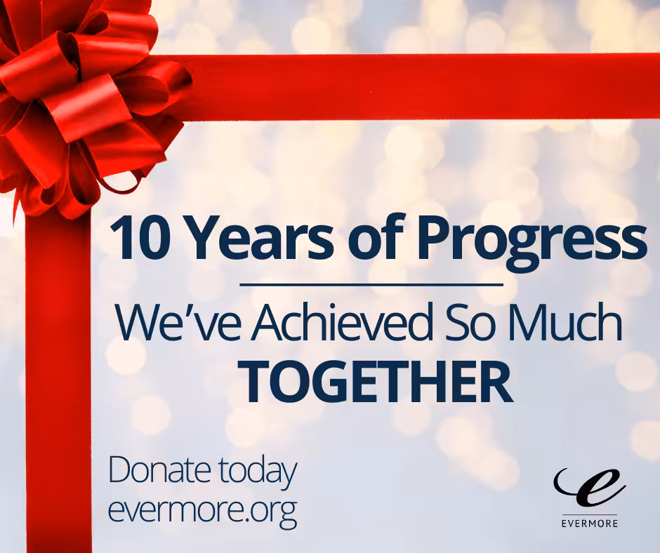 But I want to be clear. None of this would be possible without your support. Evermore is solely supported by our people, people like you. It is because of your solidarity and support that we have achieved so much. Please consider making a donation this holiday season. Every gift brings us closer to a world where all bereaved people can live vibrant, healthy, and prosperous lives.